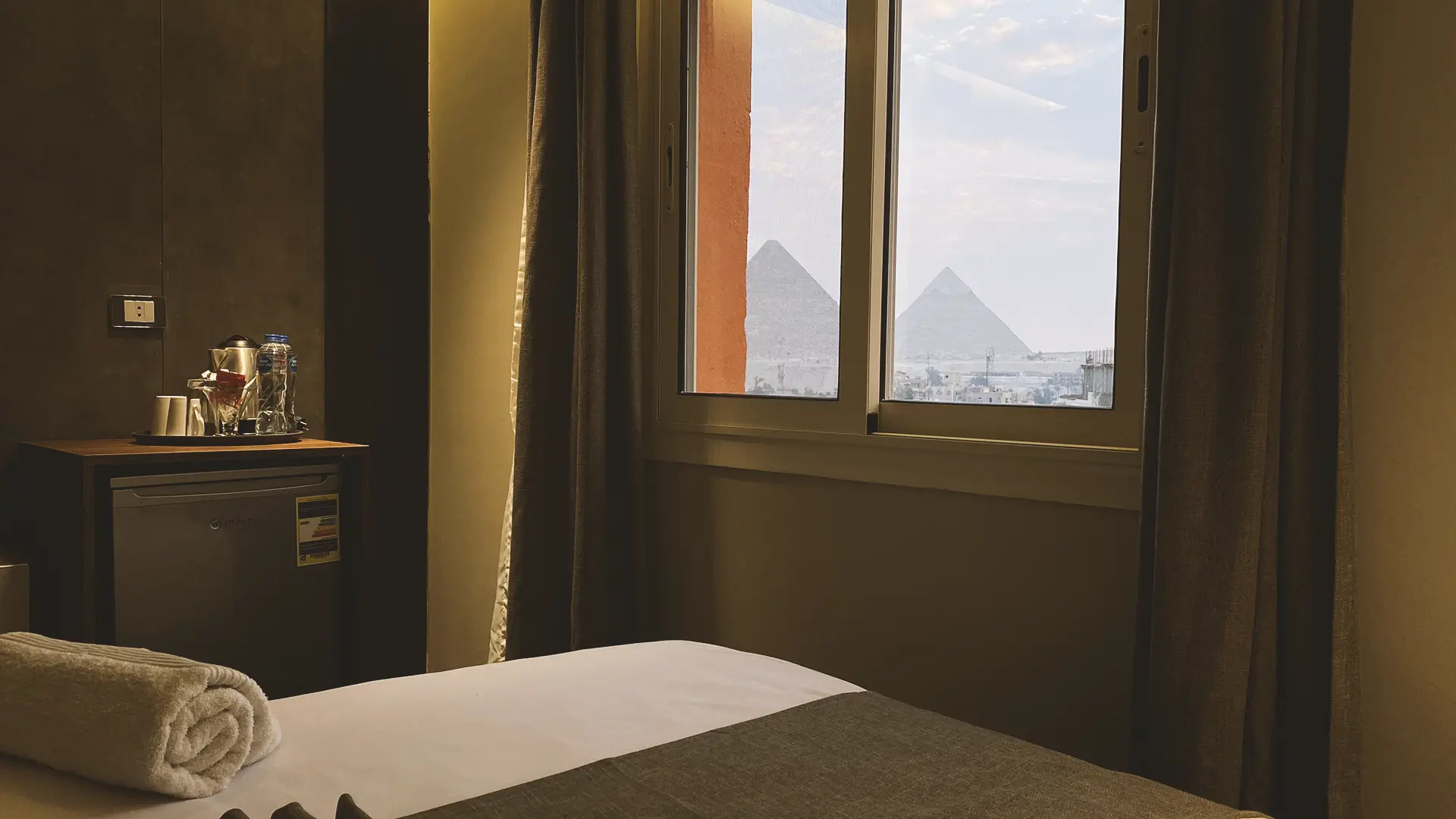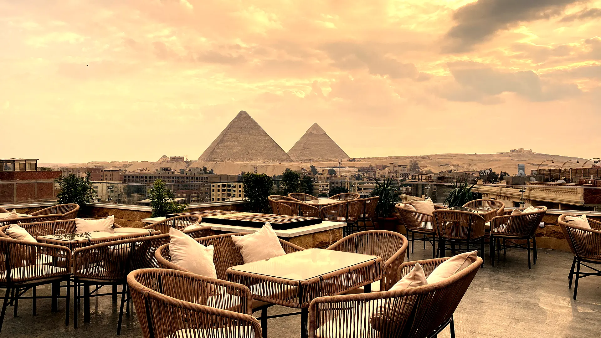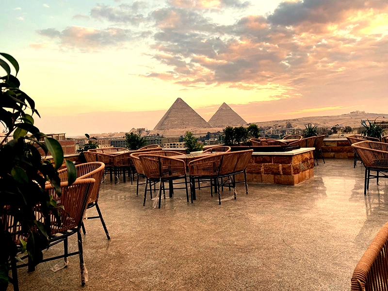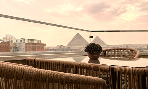 You can choose from many types of rooms. We have rooms with a king bed, rooms with two twin beds, rooms with 3 beds and rooms suitable for families. All you have to do is click to browse all our room types and choose what suits you. We will be happy that you choose our hotel to stay with us. You will also enjoy the view of the pyramids. Through the restaurant and café for breakfast or lunch at any time.